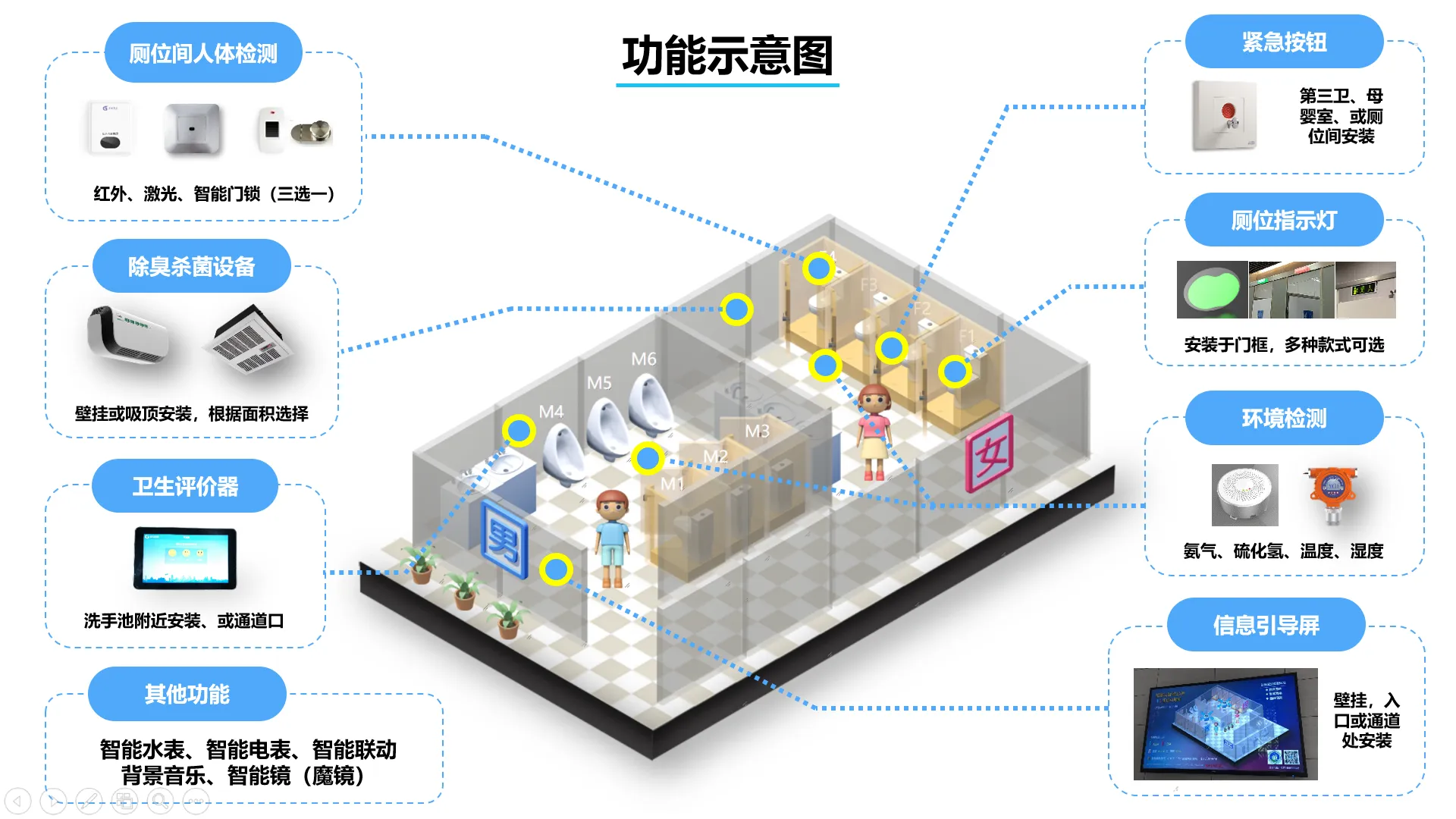智慧廁所旨在提升公共衛(wèi)生設(shè)施的品質(zhì)和服務(wù)水平,為大眾提供更加便捷、舒適和環(huán)保的廁所體驗。如今,隨著科技的不斷進步,智慧廁所系統(tǒng)被廣泛采用和建設(shè),其功能和特點也越來越豐富多樣。下面將介紹智慧廁所系統(tǒng)的內(nèi)容。